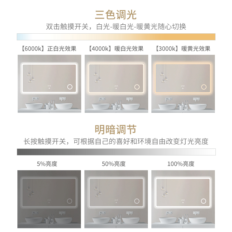Floating crystal wall-mounted adhesive wall bathroom mirror with lamp waterproof mirror bathroom except foggy mirror intellectualized makeup room mirror touch screen