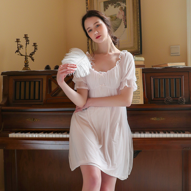 Princess Sleeping Dress Lady Summer Thin Veil Modale Short Sleeve Sexy Lace Cute Sweet Beauty Palace With Chest Cushion Pyjamas