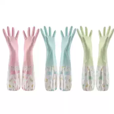 Winter washing dishes are suitable for gloves without velvet long version thin extended thin S-size female durable kitchen housework