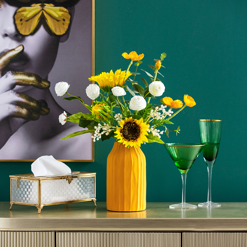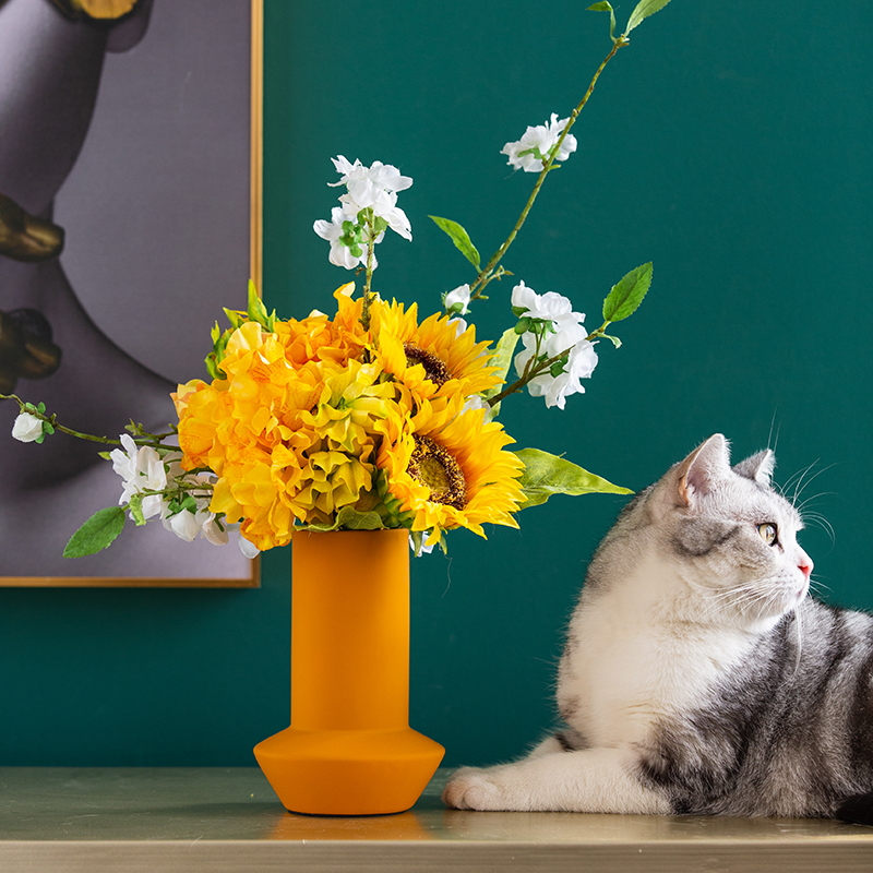 Harvest Lodge Emulation Flower Sunflower Decorative ceramic vase swing piece Living room flower arrangement Nordic creative minimalist floral