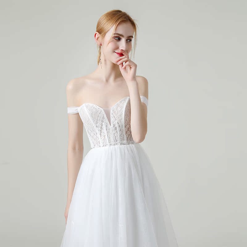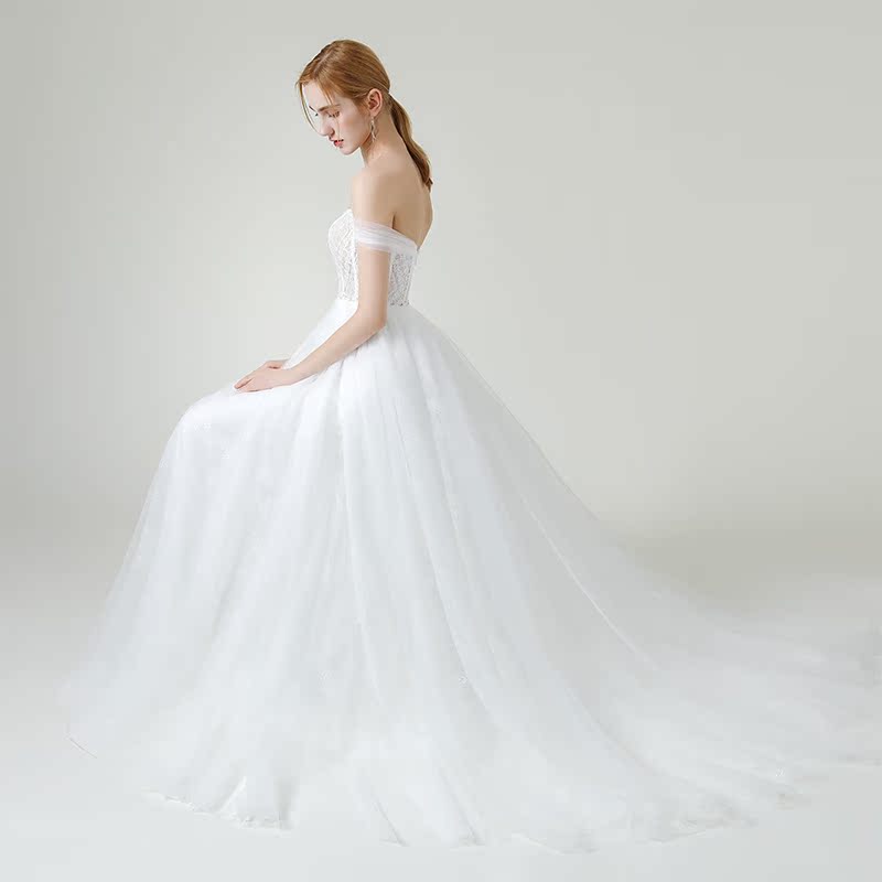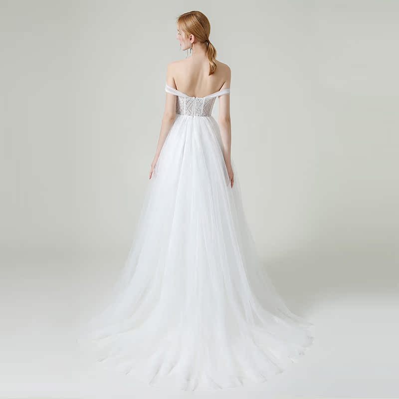 Bifanna original Real shot shoulder chest lace light luxury wedding dress trailing simple lawn out gown