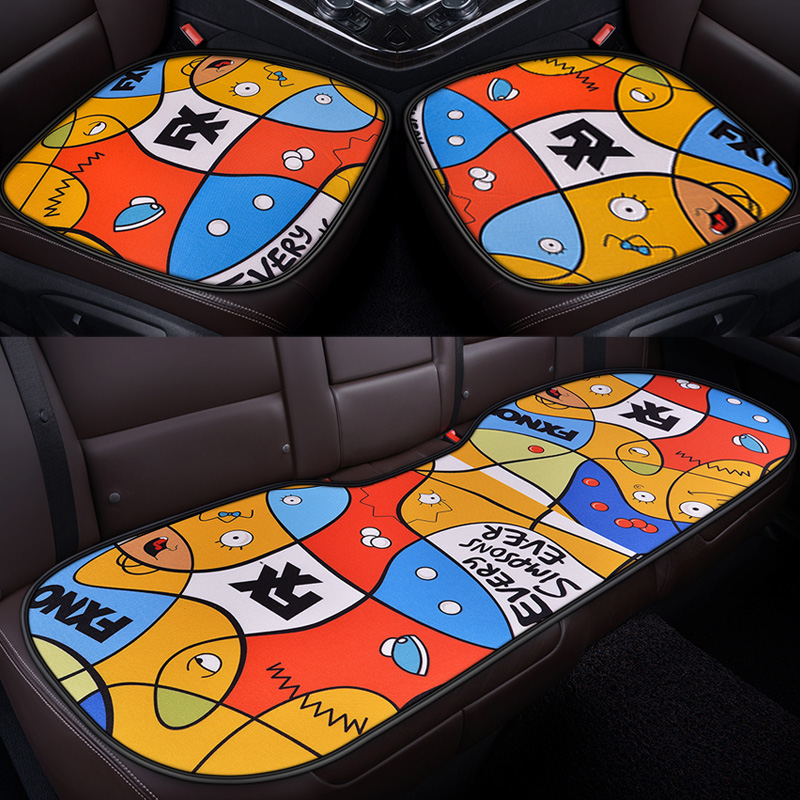 Cartoon car cushion single piece breathable flax creative network red in four seasons General unreliable back three pieces