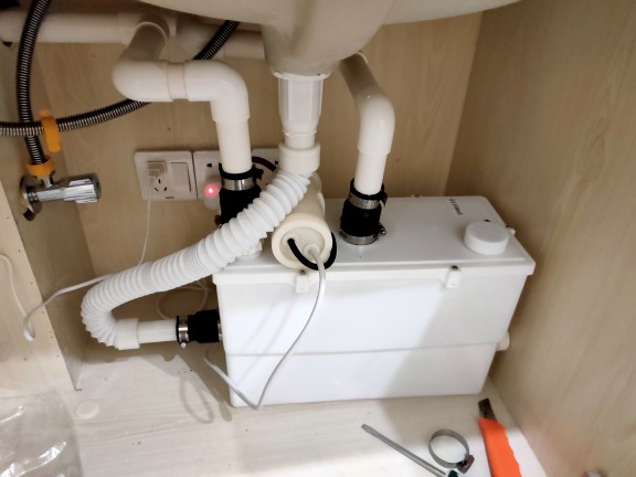 Multifunctional external air type three-into kitchen and toilet basin sewage prompter