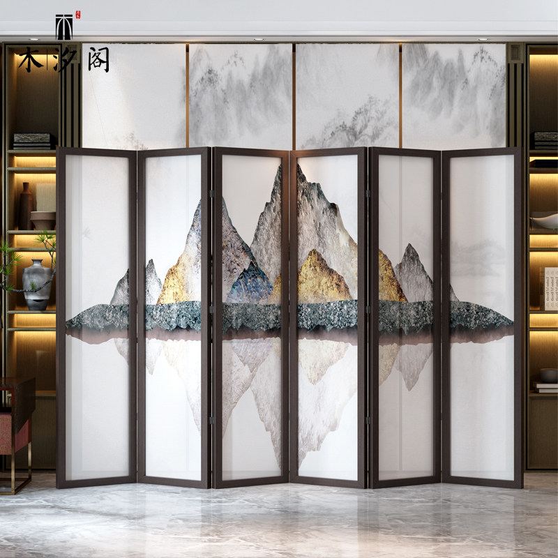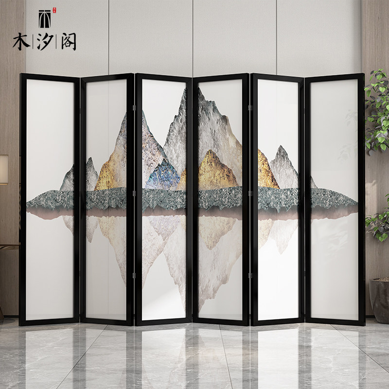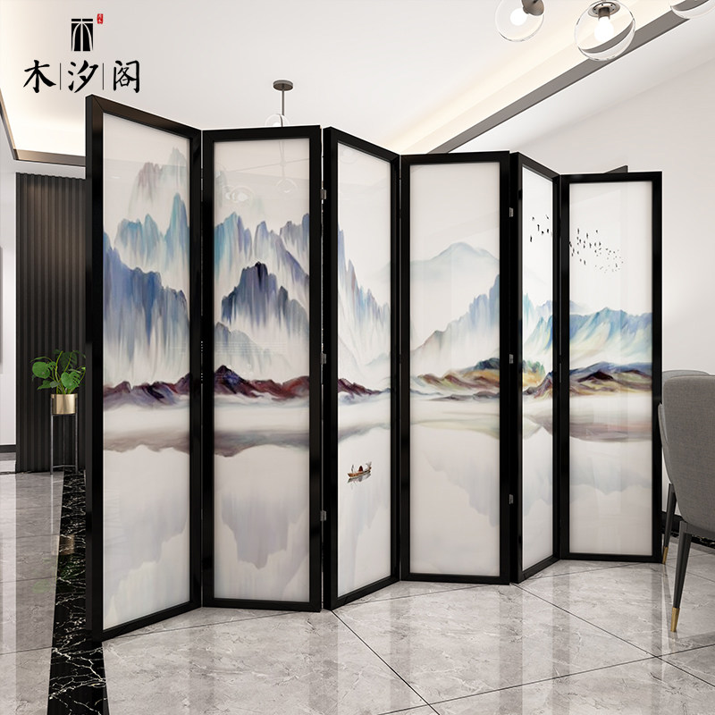 New Chinese landscape screen partition living room folding mobile minimalist mobile minimalist modern solid wood bedroom office shielded folding screen