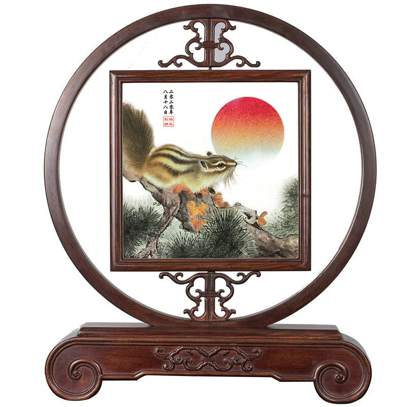Semi-embroidered (embroidered the rat black part with hair) Full embroidered (color pattern is also fully embroidered with silk thread) Semi-embroidered effect Reference full embroidery effect Reference