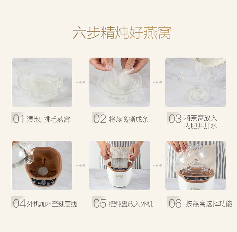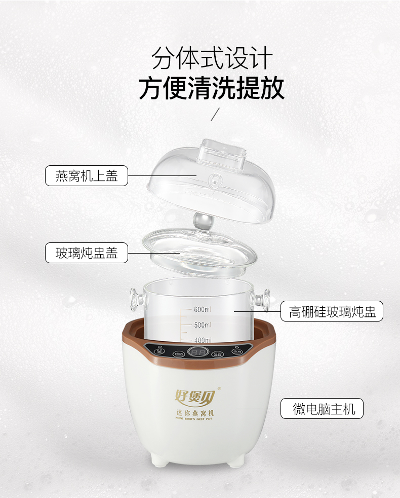 Haobaobei automatic mini bird's nest machine thickened glass water-proof stew pot office BB porridge machine on sale
