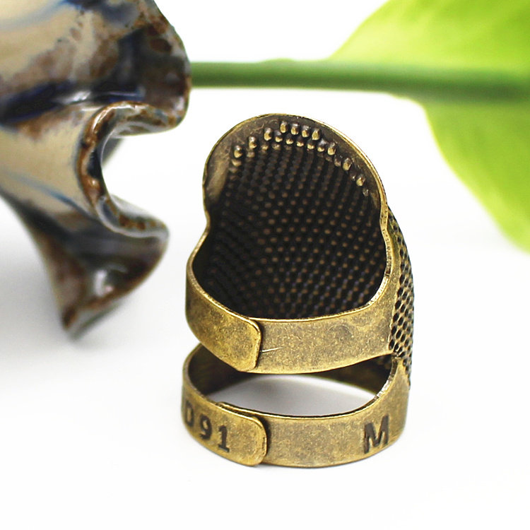 Thimble Finger Stall Home Hand-stitched Cross Embroidered Top Needle thickening adjustable True copper finger Finger Thimble Stirrup Sewing Tool