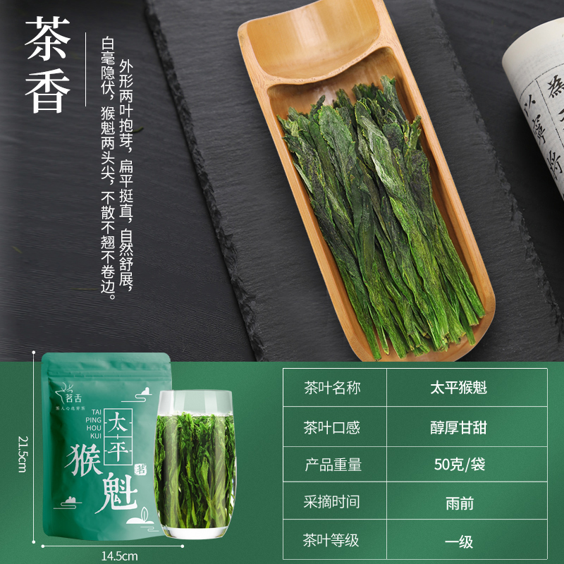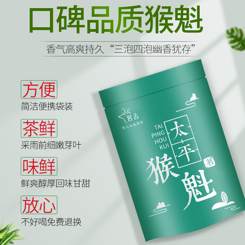 2022 New Tea Handmade Pinching Spike Authentic Taiping Monkey Kui Green Tea Yellow Mountain Original class Monkey Quit Tea Bulk 50g