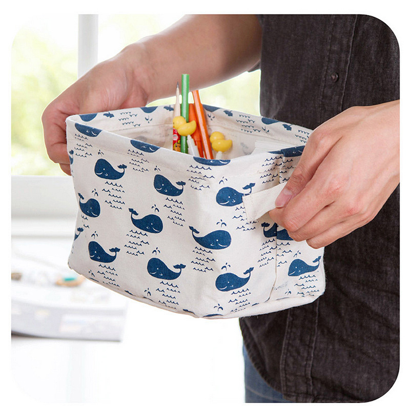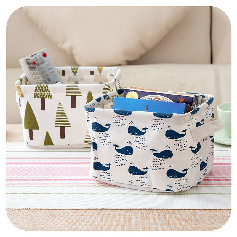 Debris Basket Containing basket containing box Folded Waterproof Cotton Hemp Cloth Art Containing barrel Cartoon with handle small fresh basket