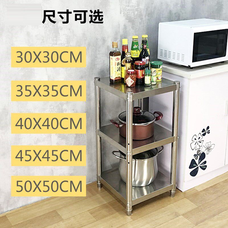 Stainless Steel Rack Quadrilateral Shelf Kitchen Shelving Stainless Steel Floor Multilayer Wall Corner Small Shelf Small Size Square