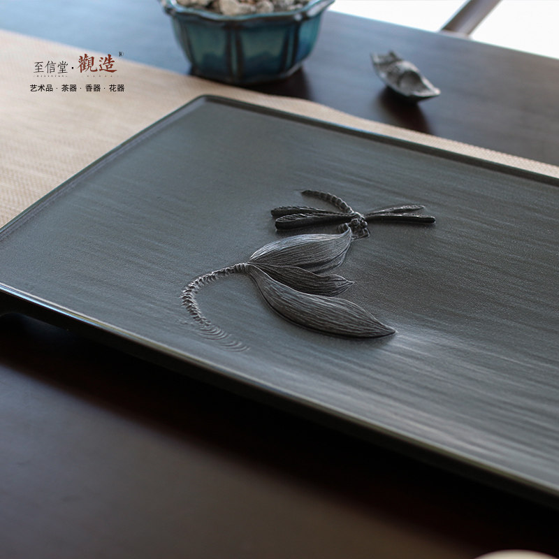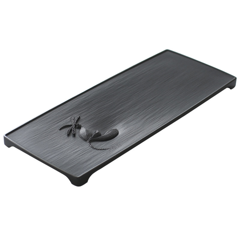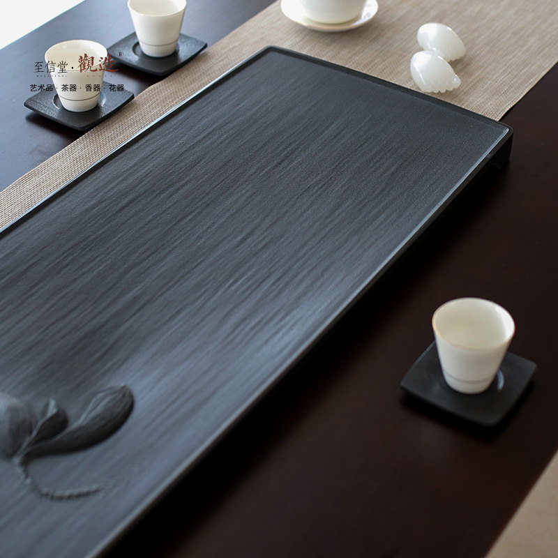 Natural black gold stone tea tray Hand carved stone tea table Drainage tea sea Simple household tea tray Tea set