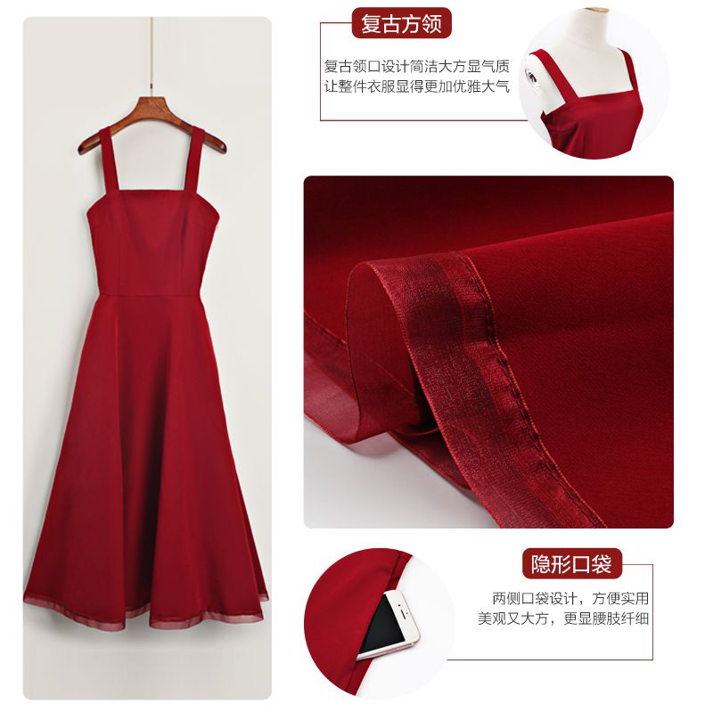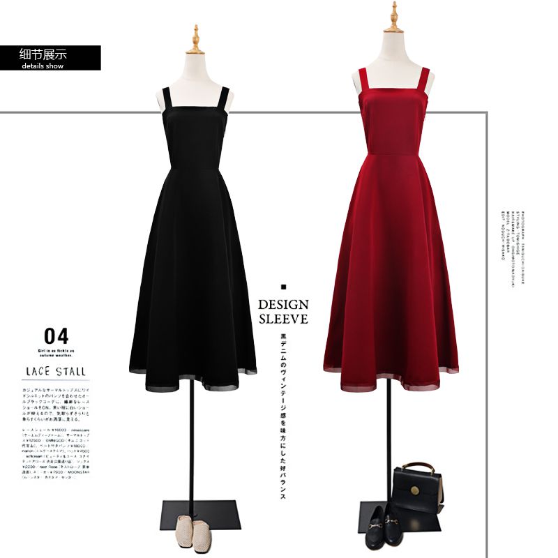 Harness one-piece dress woman Herbene small black dress Caster red fairy dress chic gentle summertime slim long dress-Taobao