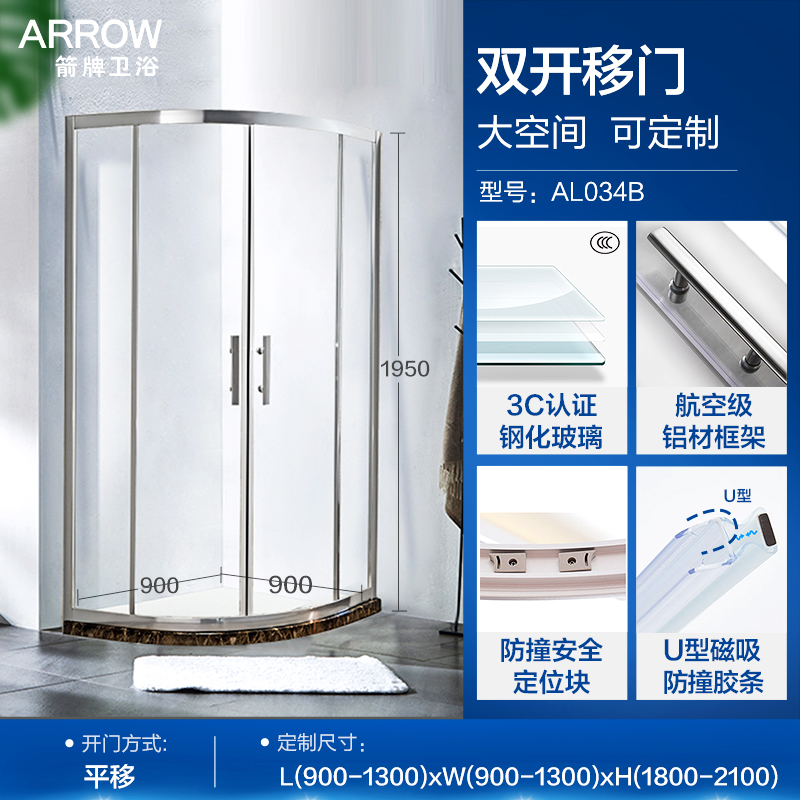 Wrigley Home Integral Shower Room Partition Wet and Dry Separate Bathroom Custom Glass Door Sliding Door AL034B Pre