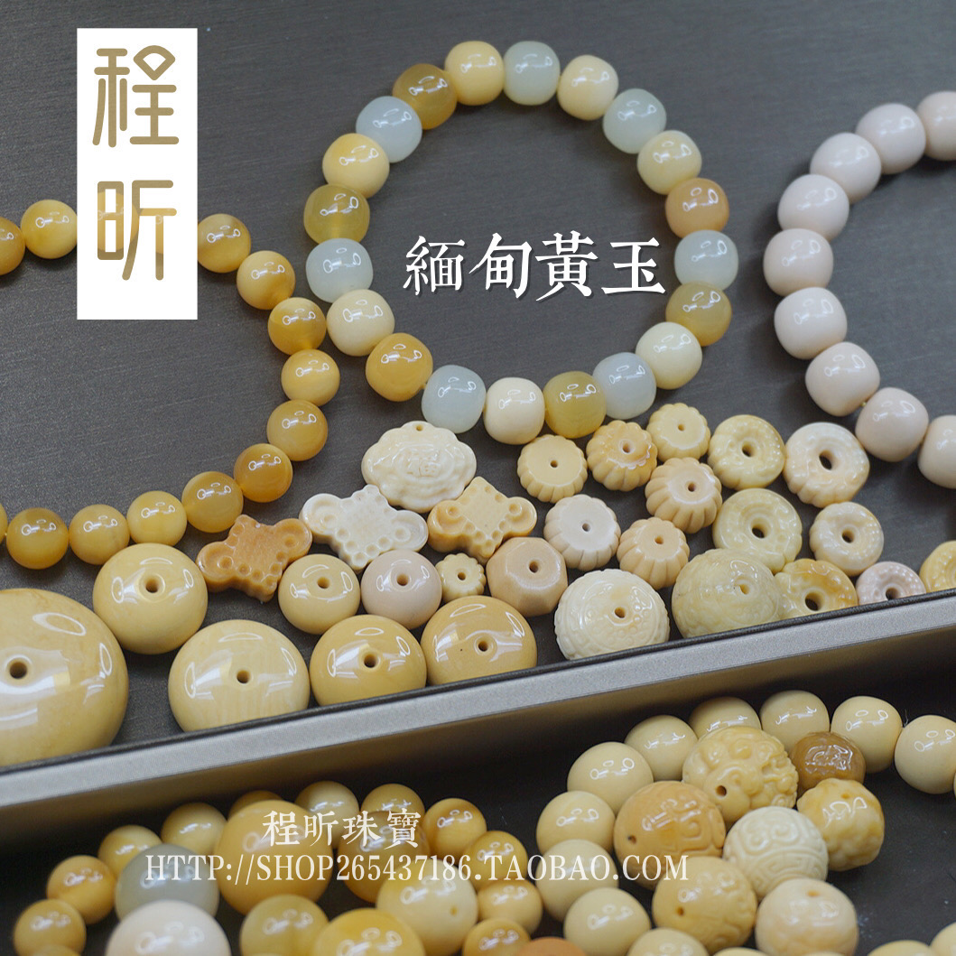 Cheng Xin natural jade Myanmar yellow jade three-way Buddha head boutique Myanmar yellow hand string hand 108 Buddha beads accessories DIY