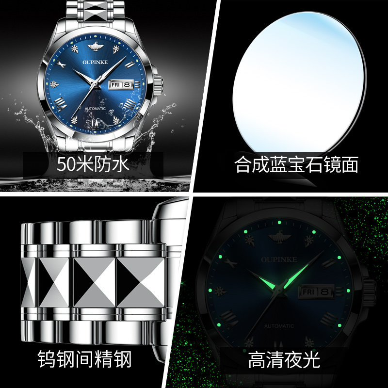Swiss European brand name watch men's automatic mechanical watch imported movement waterproof brand men's watch