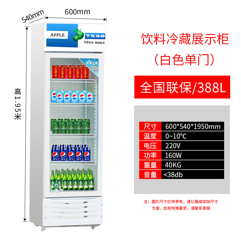 Refrigerated Cabinet Freshness Cabinet Display Case Vertical Drinks Cabinet Commercial Single Door 388L Display Cabinet Freezer Refrigerated Ice Water Cabinet