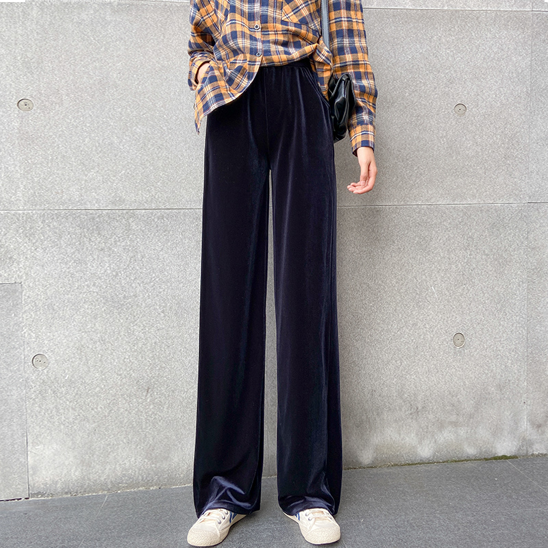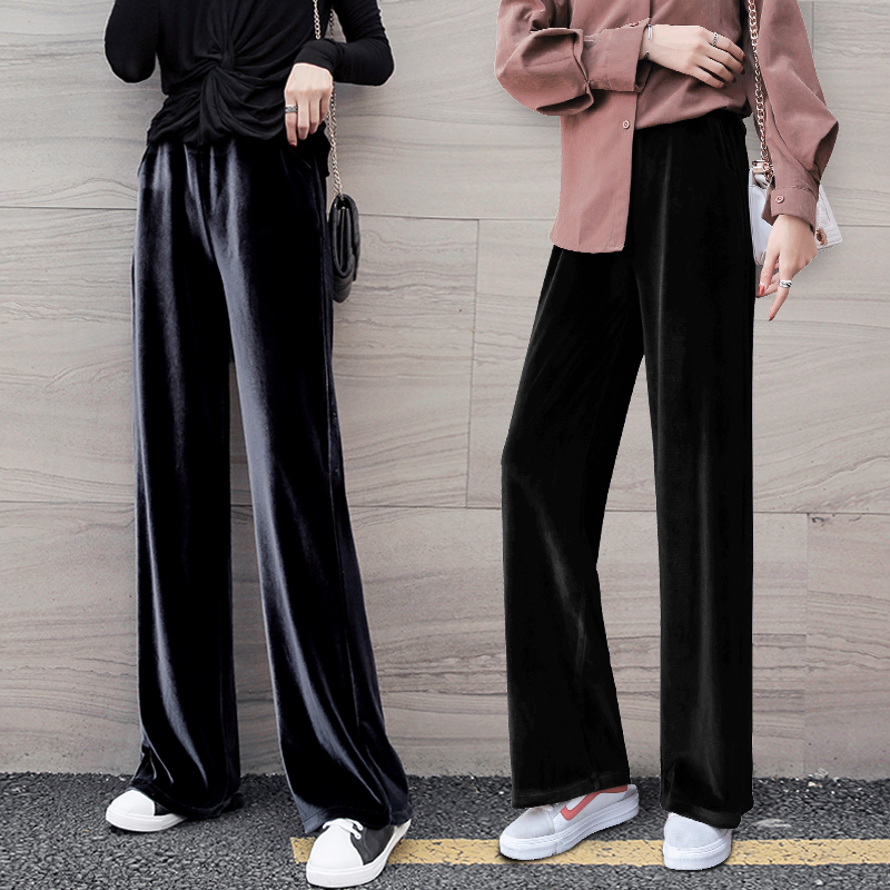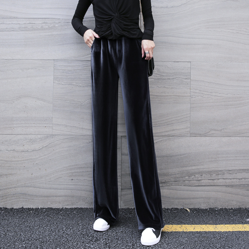 Gold Velvet Broadlegged Pants Woman High Waist Pituality Spring Autumn Black 100 Hitch Slim Straight Barrel Loose Tow Casual Long Pants Woman