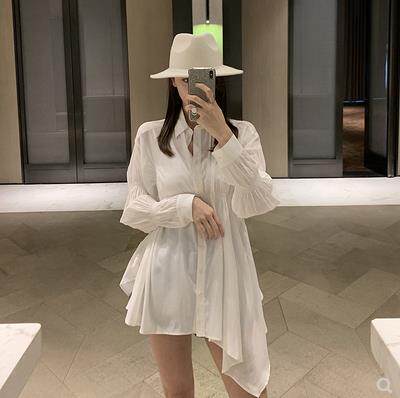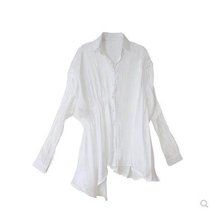 France 2022 spring and summer new shirts women design with little crowdsourced white long sleeves asymmetrical loot shirt
