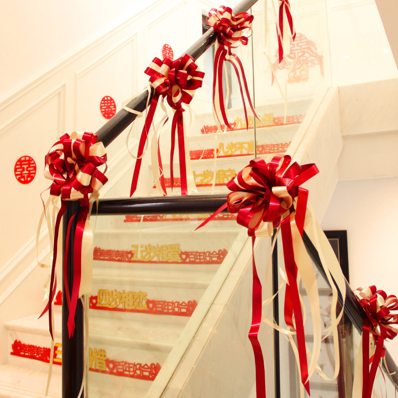 Married stair handrail decoration wedding wedding supplies Daquan xi zi flower ribbon marriage room arrangement balloon set