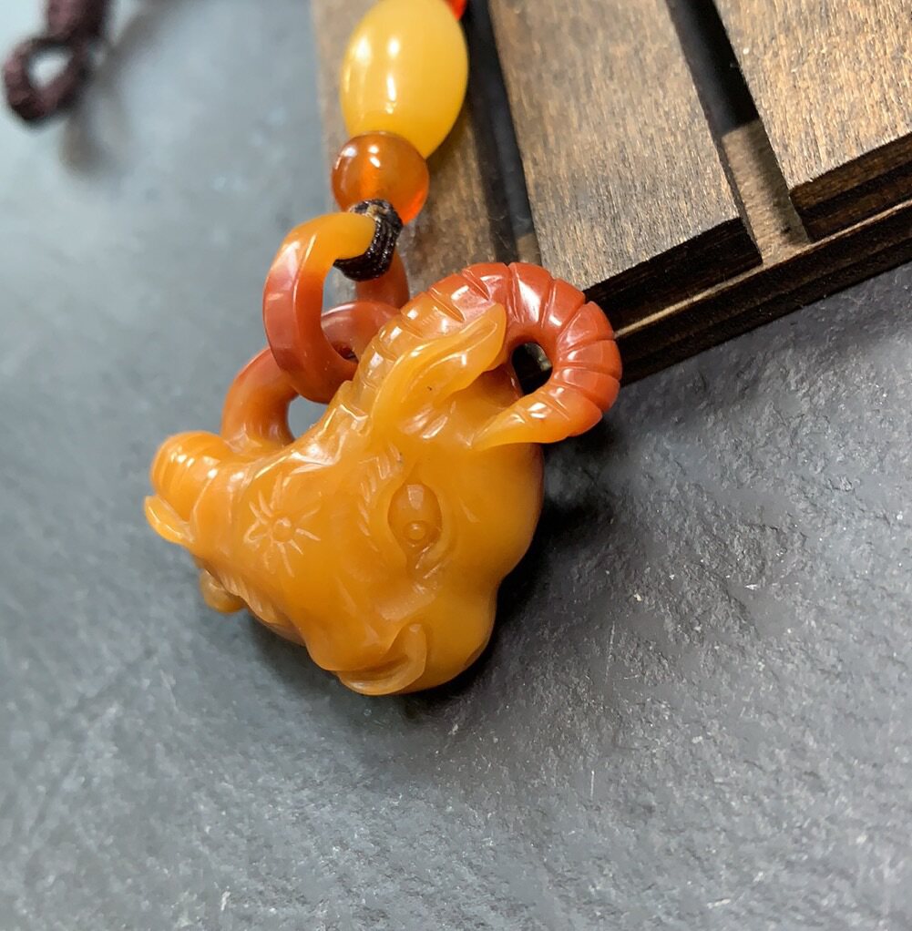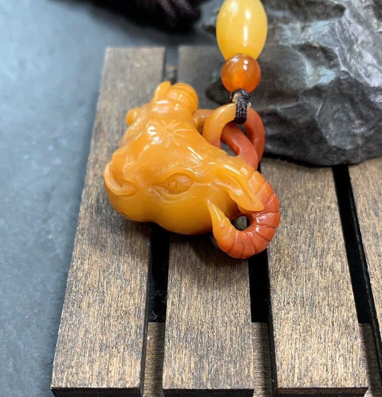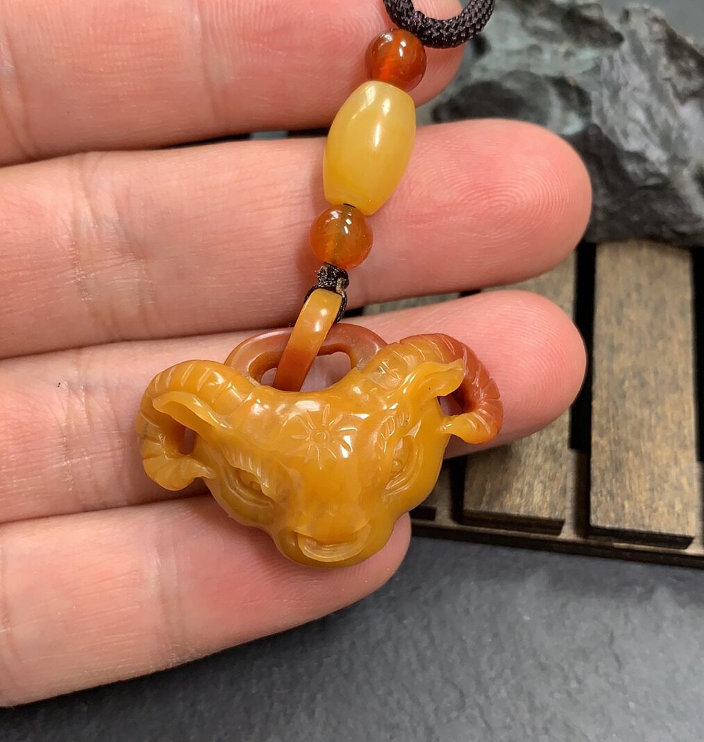 Yunnan natural jade Huanglongyu zodiac sheep head pendant leading sheep pendant hollow carving men and women with certificate