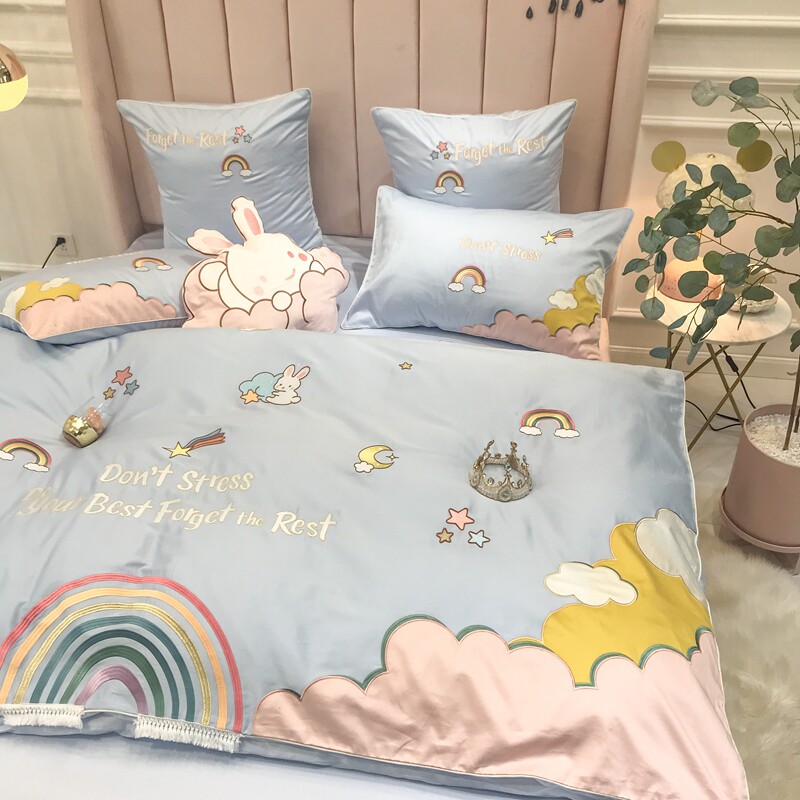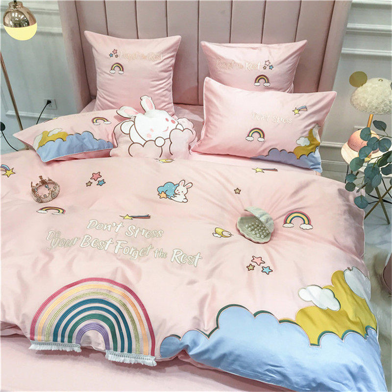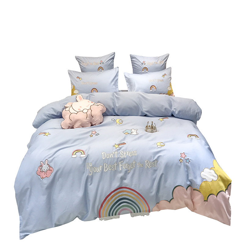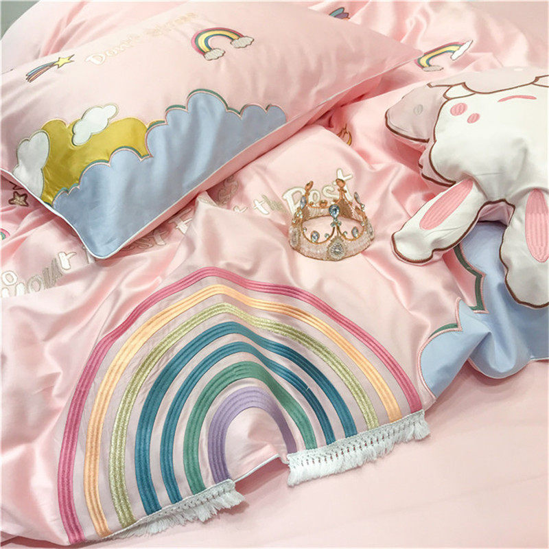 Fresh girl heart 80 long-staple cotton four-piece set pure cotton cotton cartoon rainbow quilt cover princess bedding