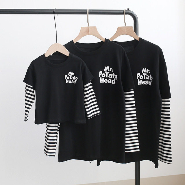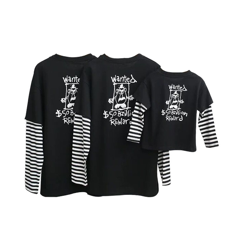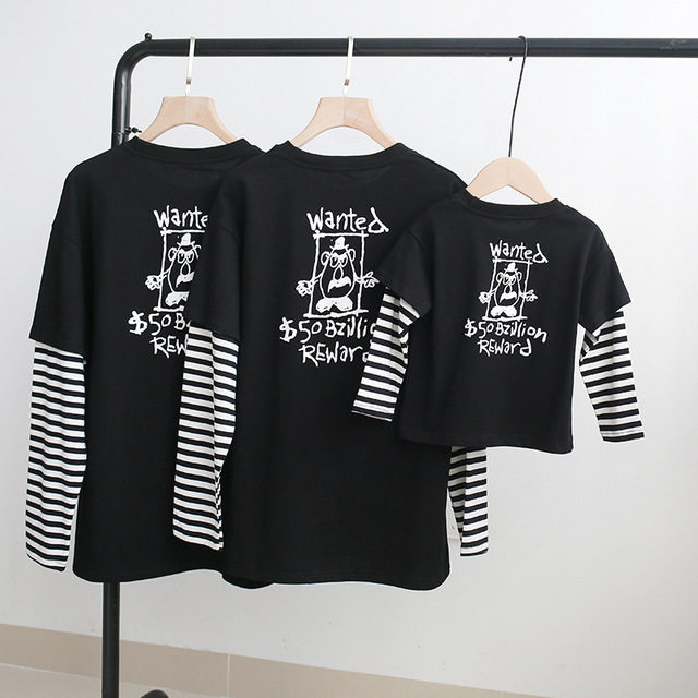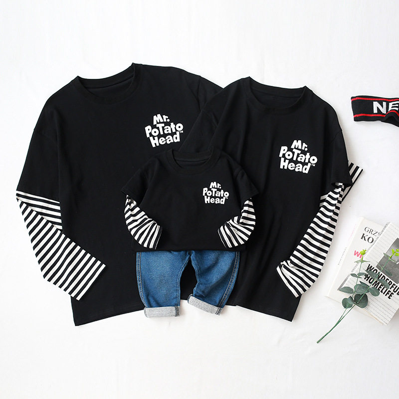 Parent-child clothes spring fake two-piece T-shirts a family of three and four mother-child mother-daughter clothes Western style long-sleeved parent-child sweater trend