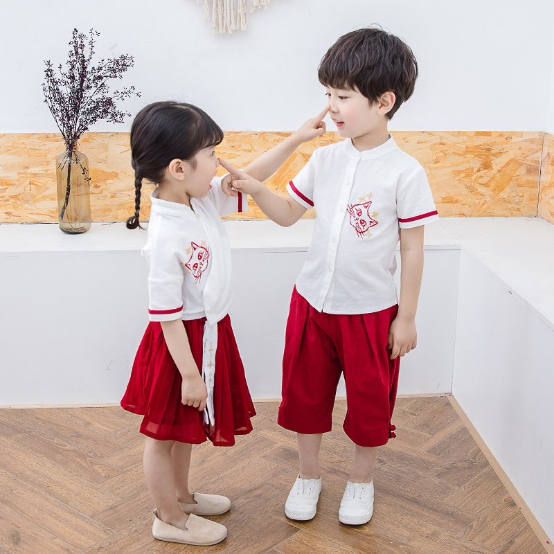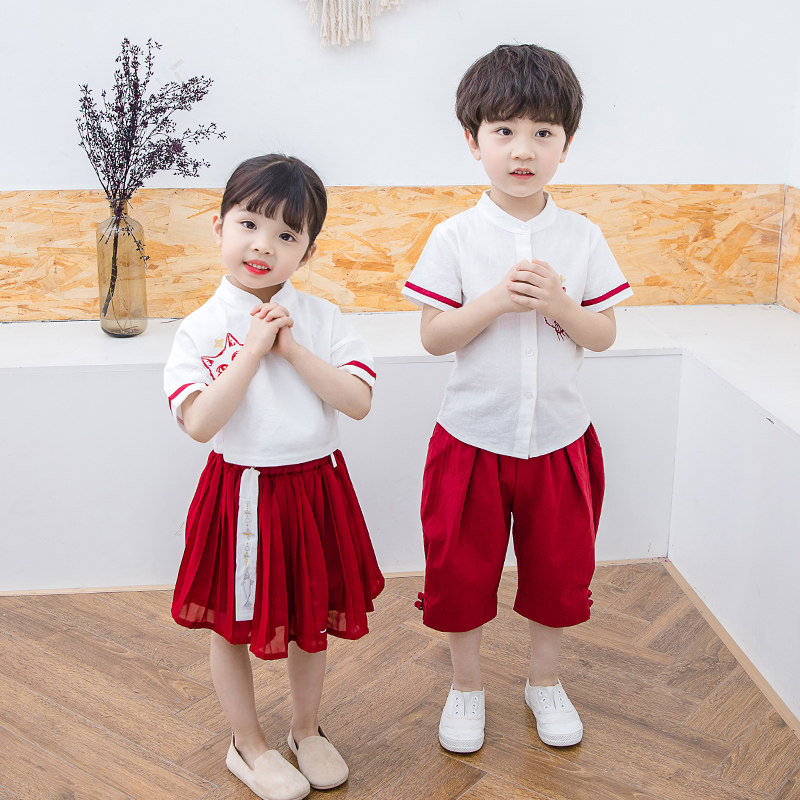 Children's Hanfu Suit Summer Kindergarten Suit Girls' Short Sleeve Tang Suit Male Baby National Style Performance Uniform School Uniform
