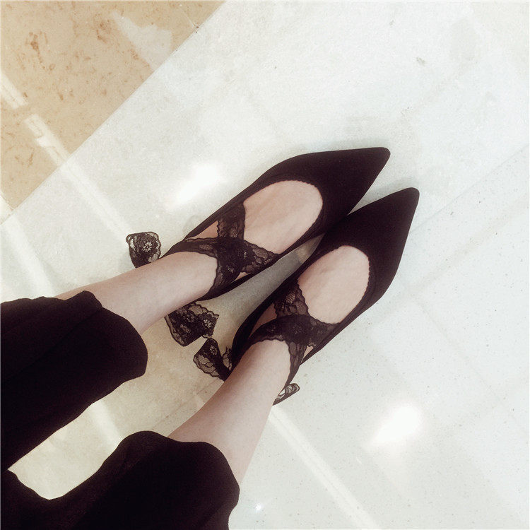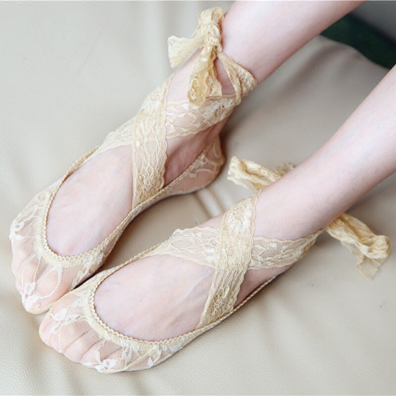 Japanese sexy lace tied with boat socks female summer shallow mouth anti-slip stealth socks palm short single shoe heel socks