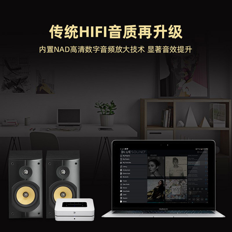 BLUESOUND power amplifier with PSB XB desktop HiFi computer game Bluetooth audio home living room speaker