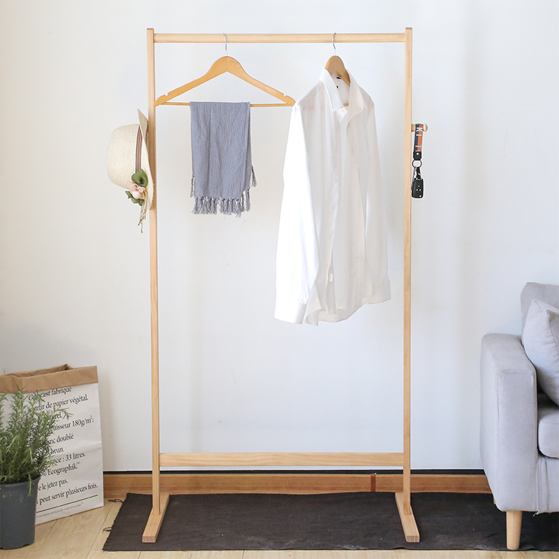 Small apartment solid wood double-rod household coat rack simple modern bedroom living room floor-to-ceiling clothes rack hanger