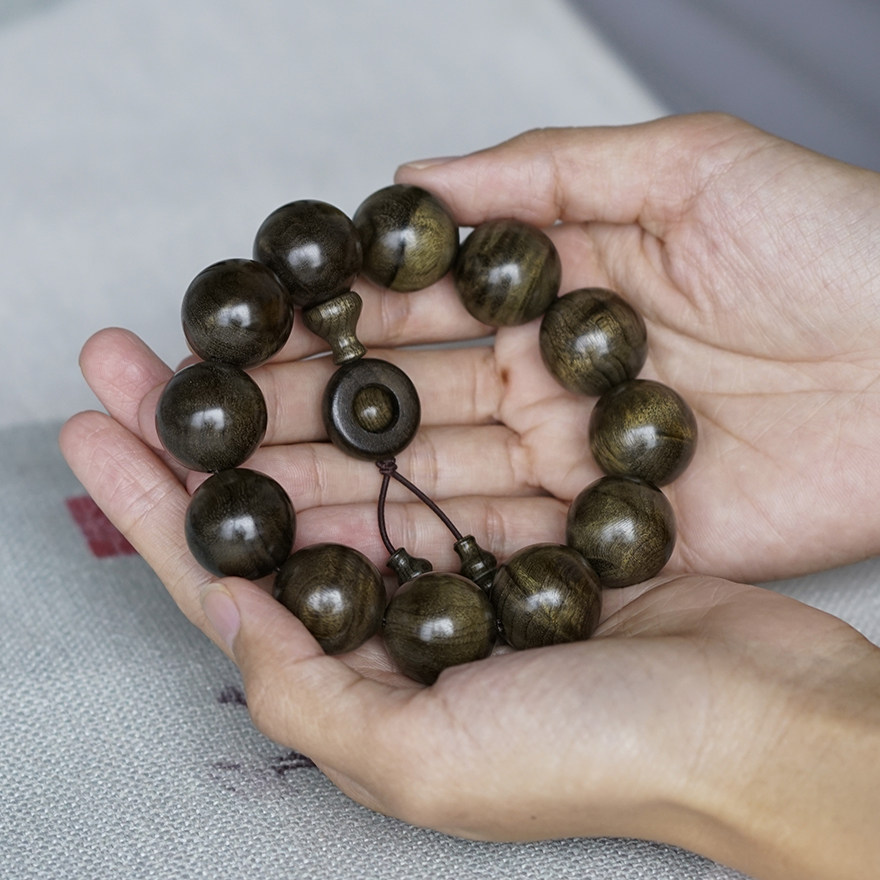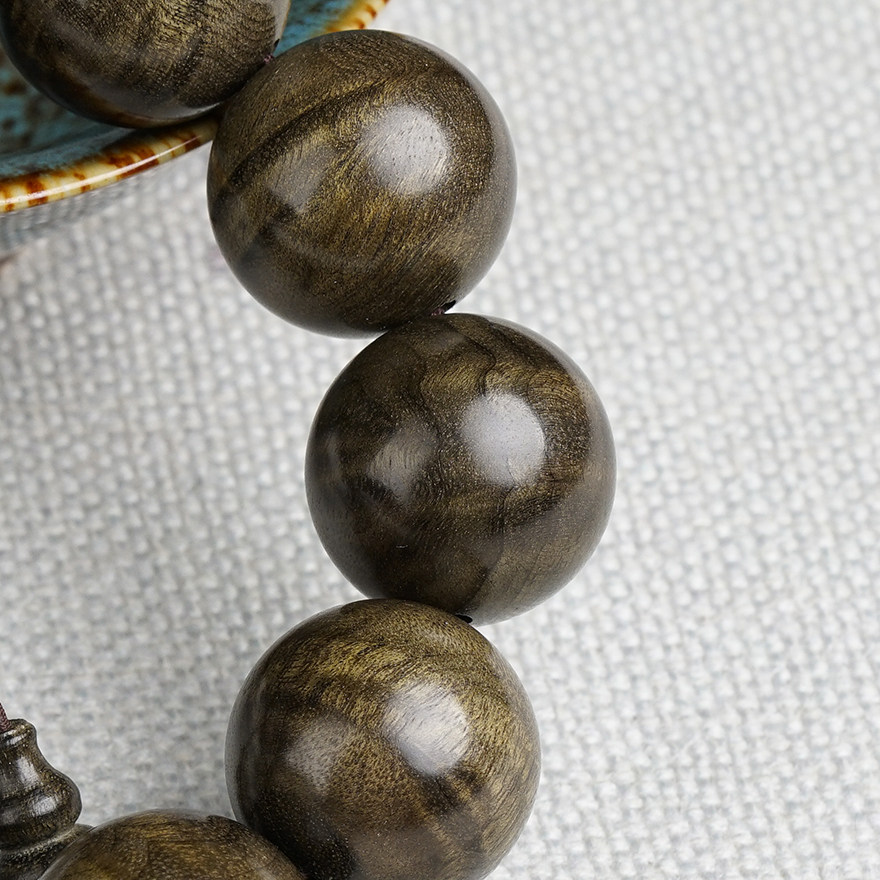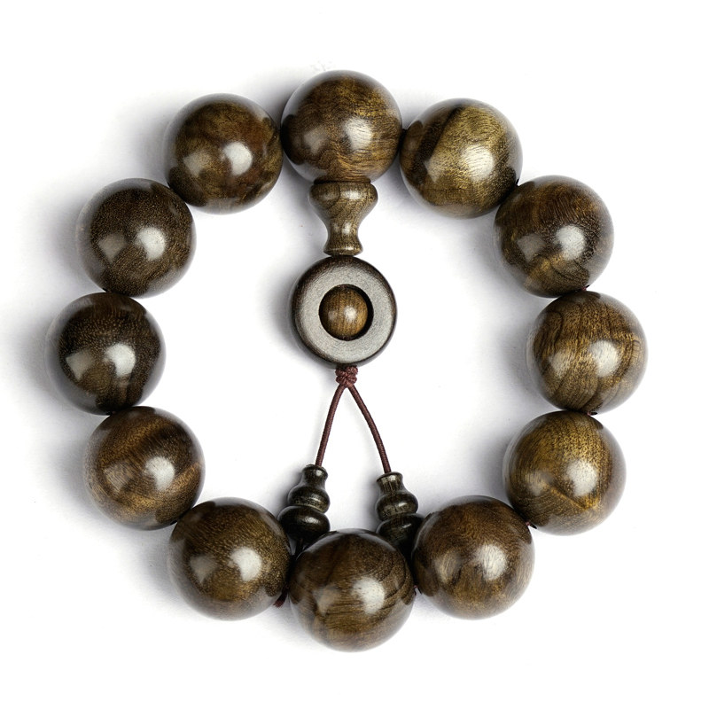 Pick up the drain (water ripple) golden silk Nangyin Dark Wood 20mm Buddha Pearl Handstring Little Ye Zhennan