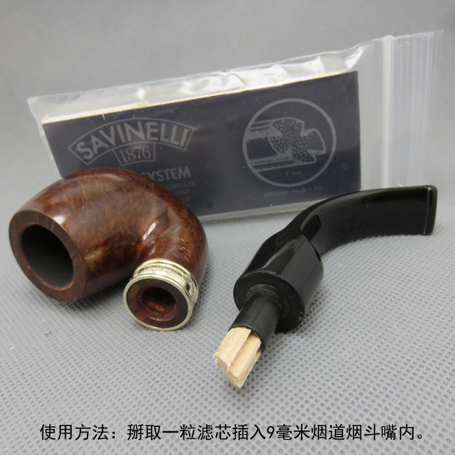Savinelli, Italy, Balsa Balsa, Ecuador, light wood adsorption type 9mm pipe filter for 15 mounted
