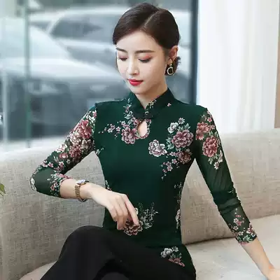 Autumn New National style collar net gauze Latin dance long sleeve female national standard modern social dance practice coat