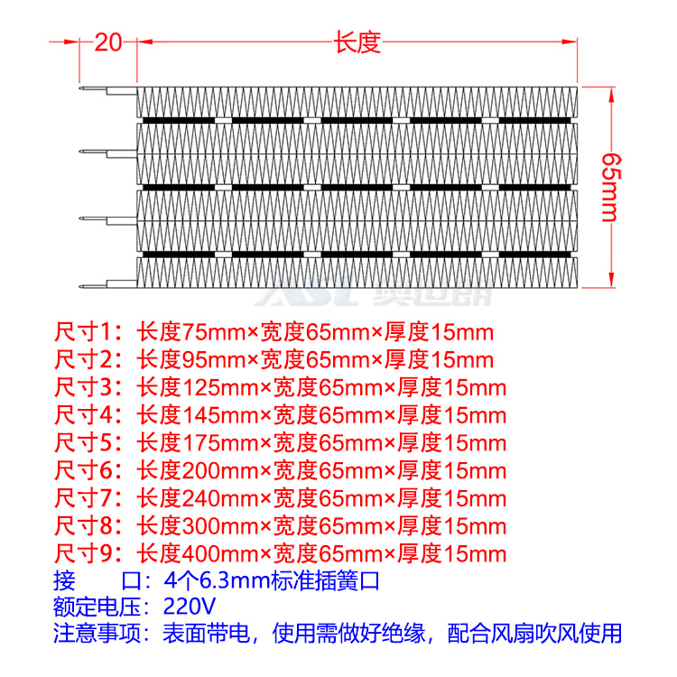 Yuba PTC ceramic heating block heating electric heater heating module 220V integrated ceiling heater 65mm