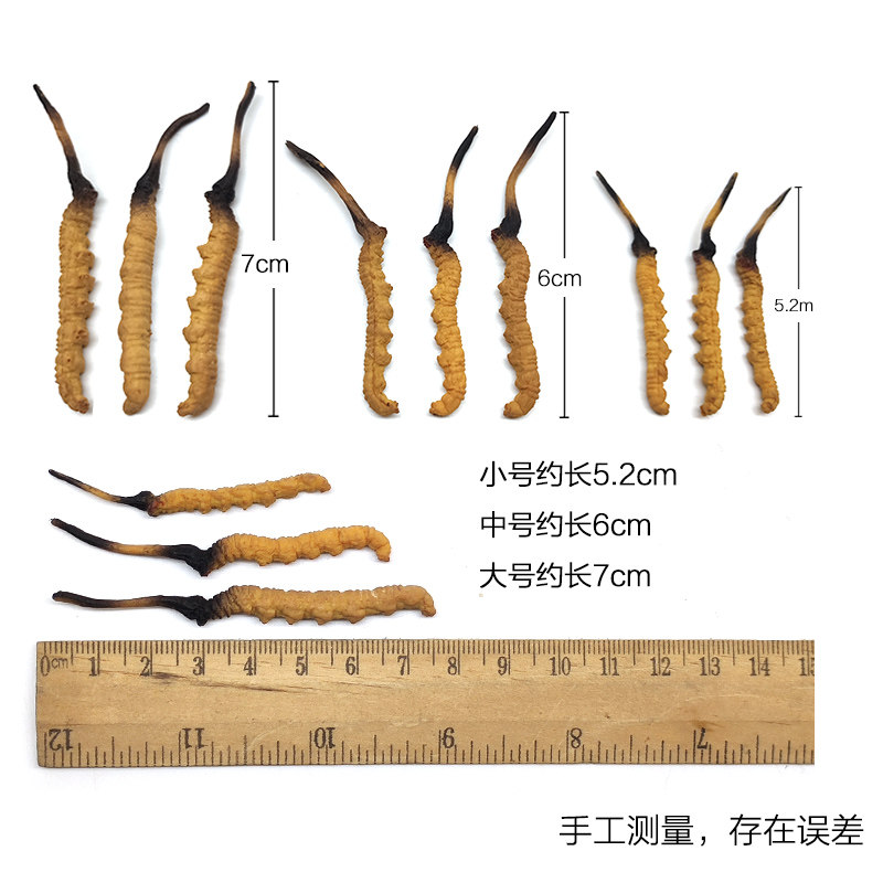 Small number of Caterpillar Fungus 100 strips (length about 5 2cm) of the number Caterpillar Fungus 100 strips (length about 6cm) Large number of Cordyceps militaris 100 strips (length about 7cm)