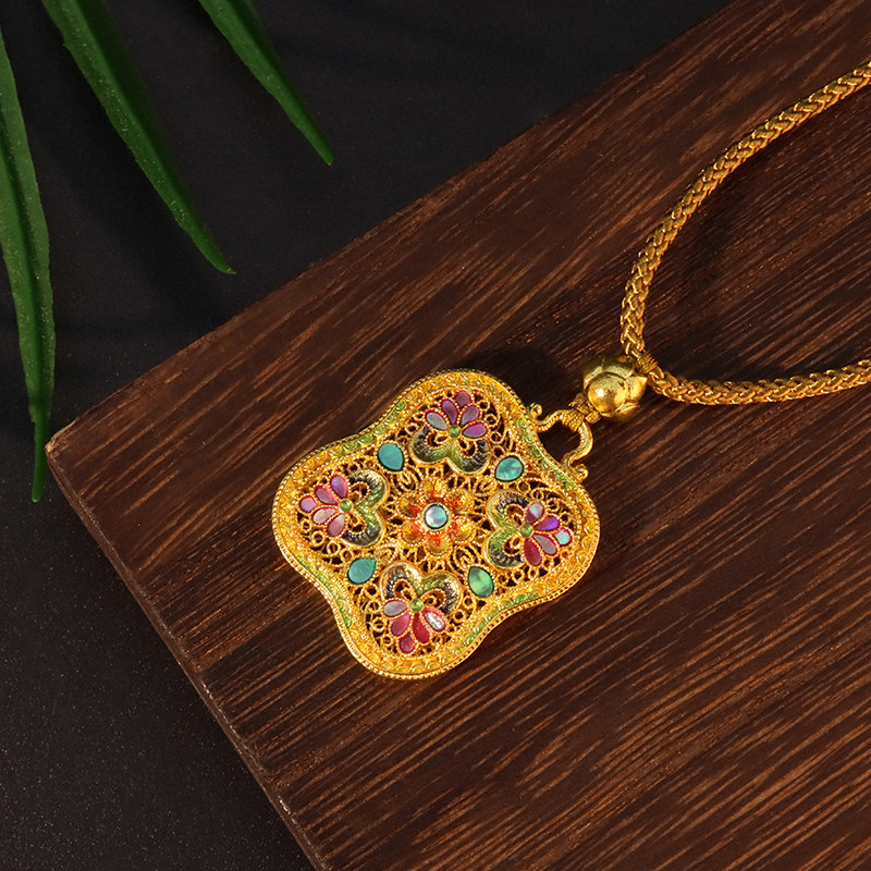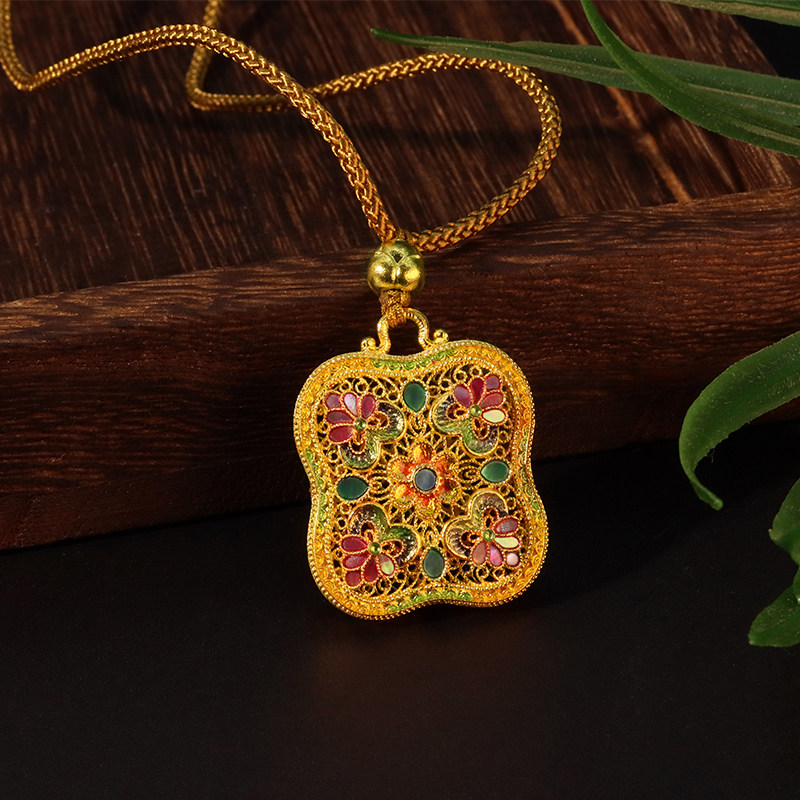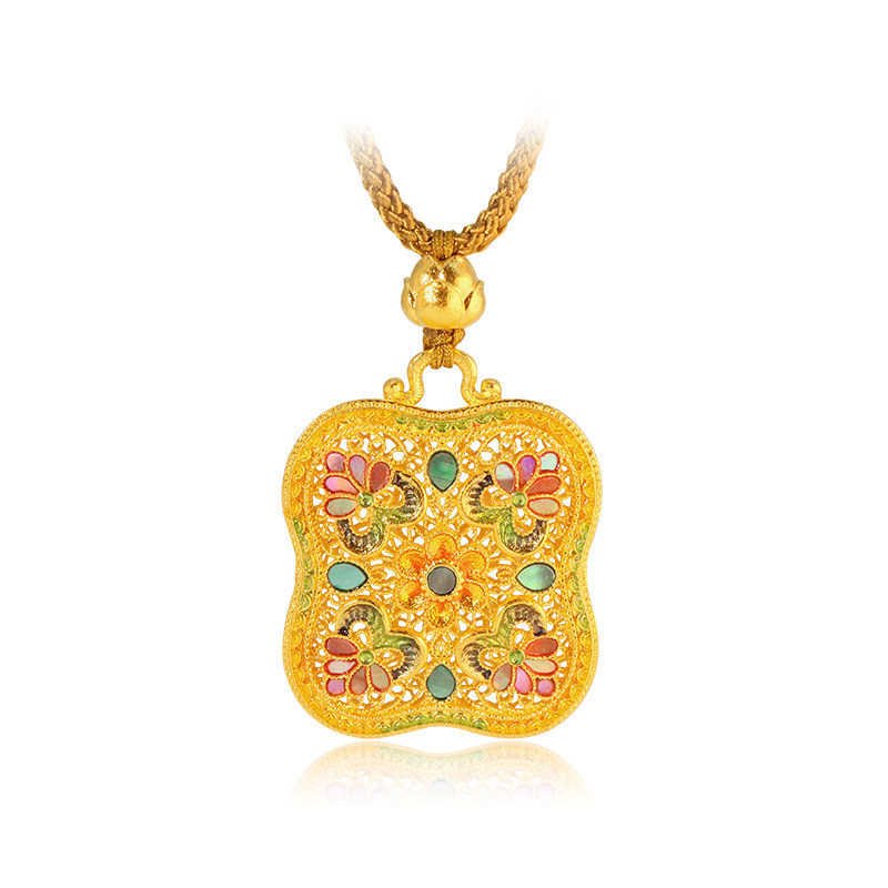 Celebrity gold shop ancient gold pure gold 999 colorful snail pendant necklace filigree non-genetic gift for personal use