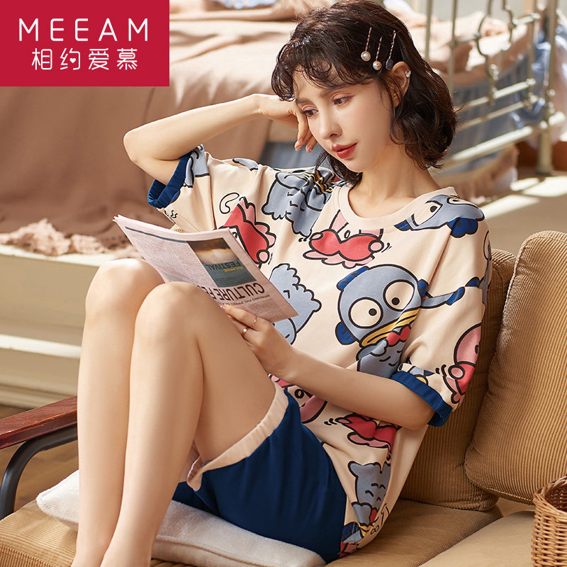 2021 new pajamas women's summer pure cotton thin short-sleeved two-piece suit spring and summer net red burst style home clothes