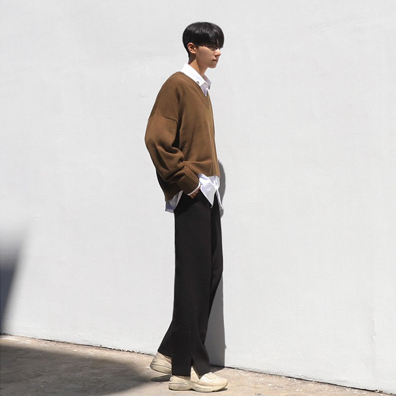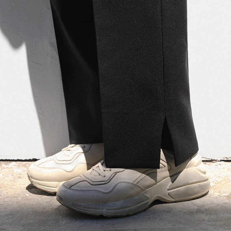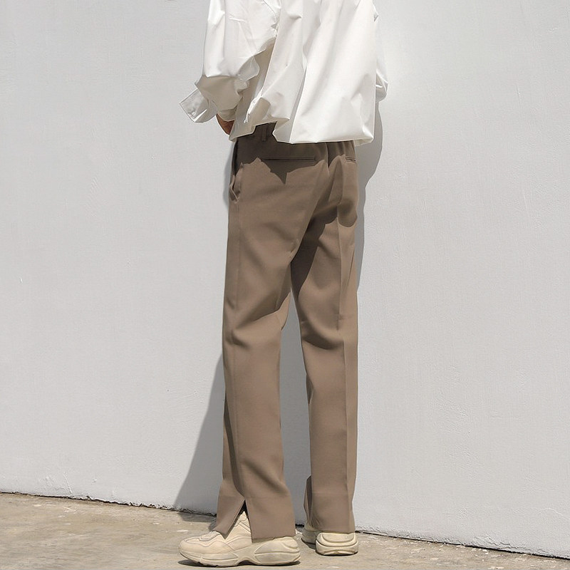 Men's straight suit pants spring Korean version of loose slit casual pants student trend gentleman drape small trousers men