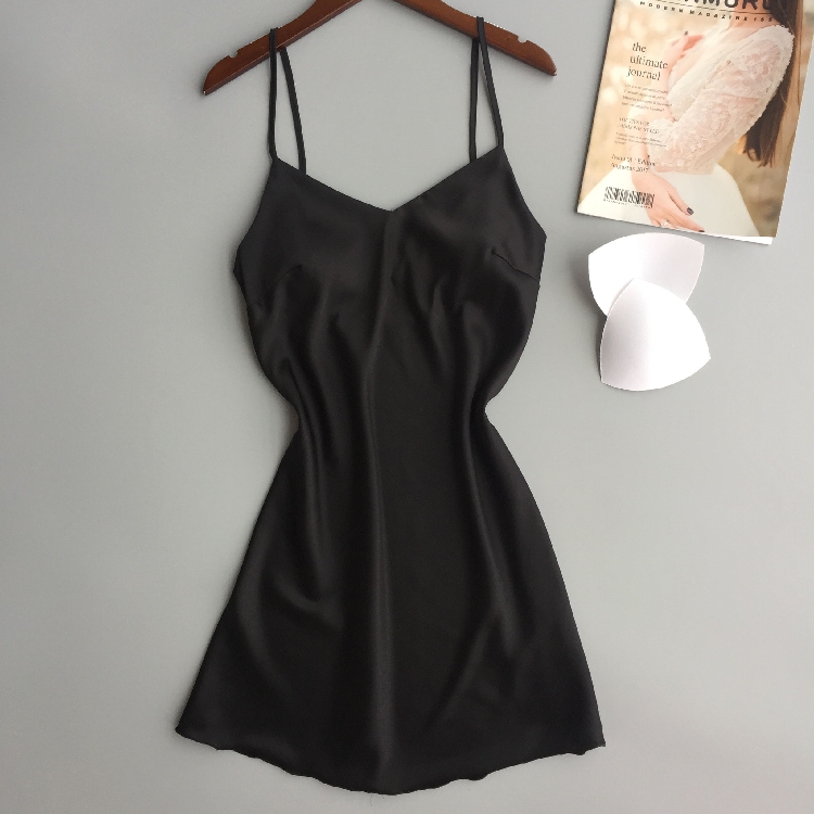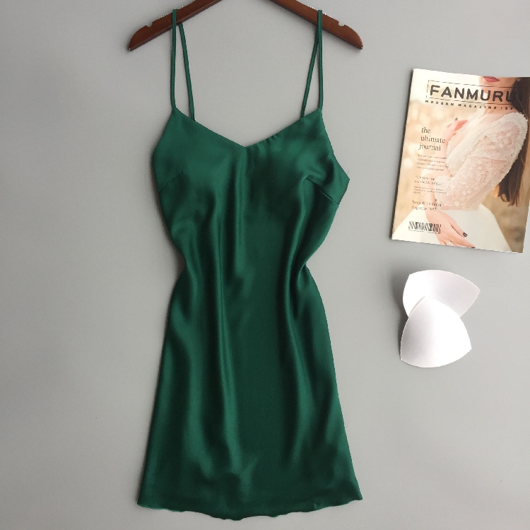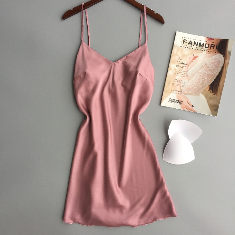 Sexy pajamas with chest pad nightdress ladies summer suspenders thin section ice silk Korean version summer new inner wear home clothes