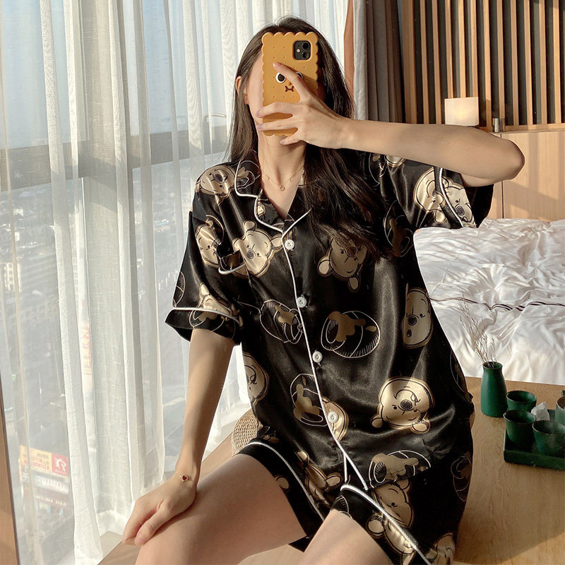2022 South Korea East Gate Ice Silk Pyjamas Women's Summer Thin style Han version Short sleeves Little Bear Net Red Silk Home Clothes-Taobao