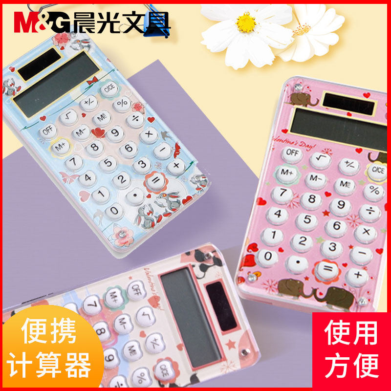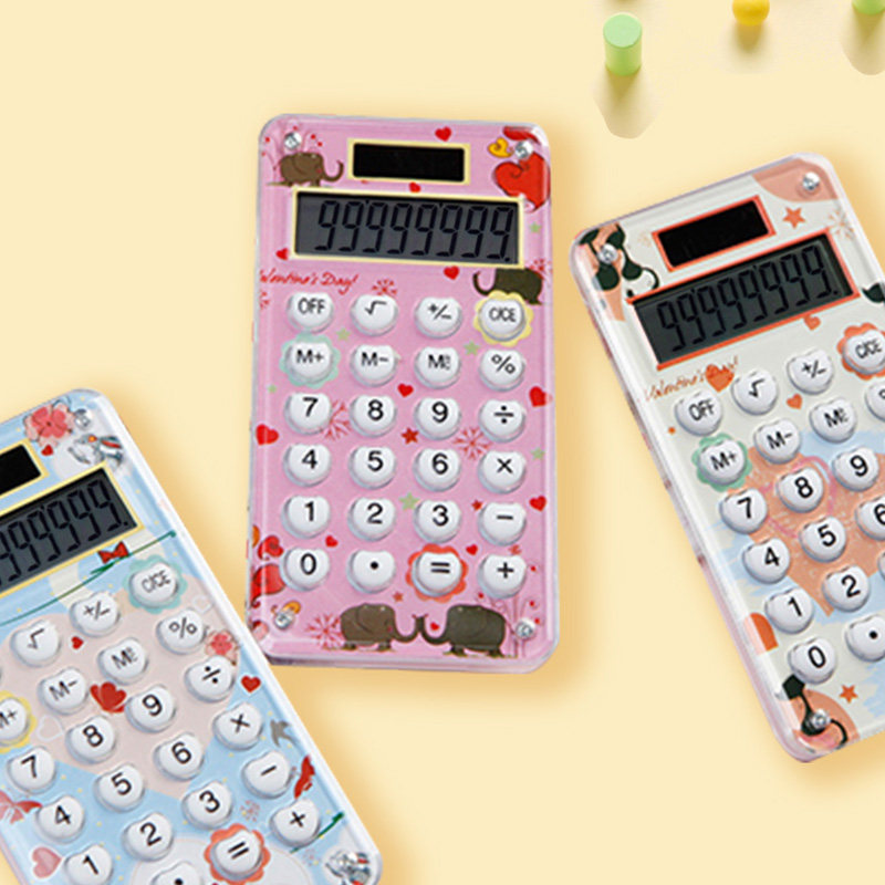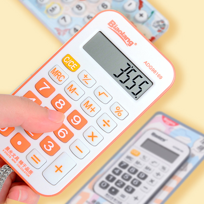 Morning Light Portable Fashion Calculator Pink Elementary Students With Cute Cartoon Type Mini Computer Solar Small Color Cartoon With Hanging Rope Candy Color Calculator Exam Computer