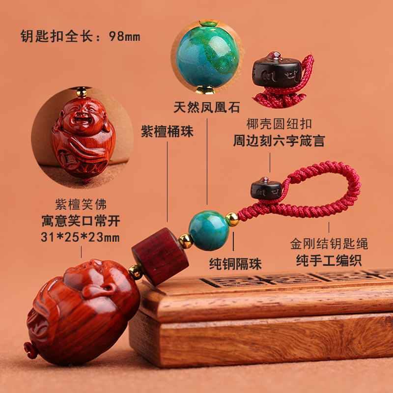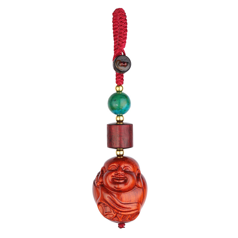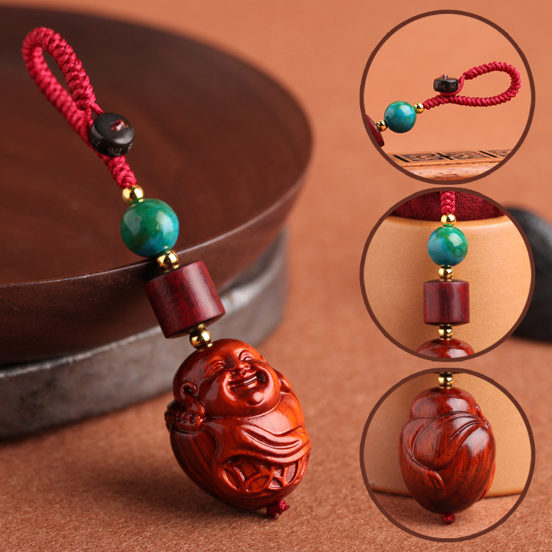 Small leaf red sandalwood Copper Money Laughing Buddha