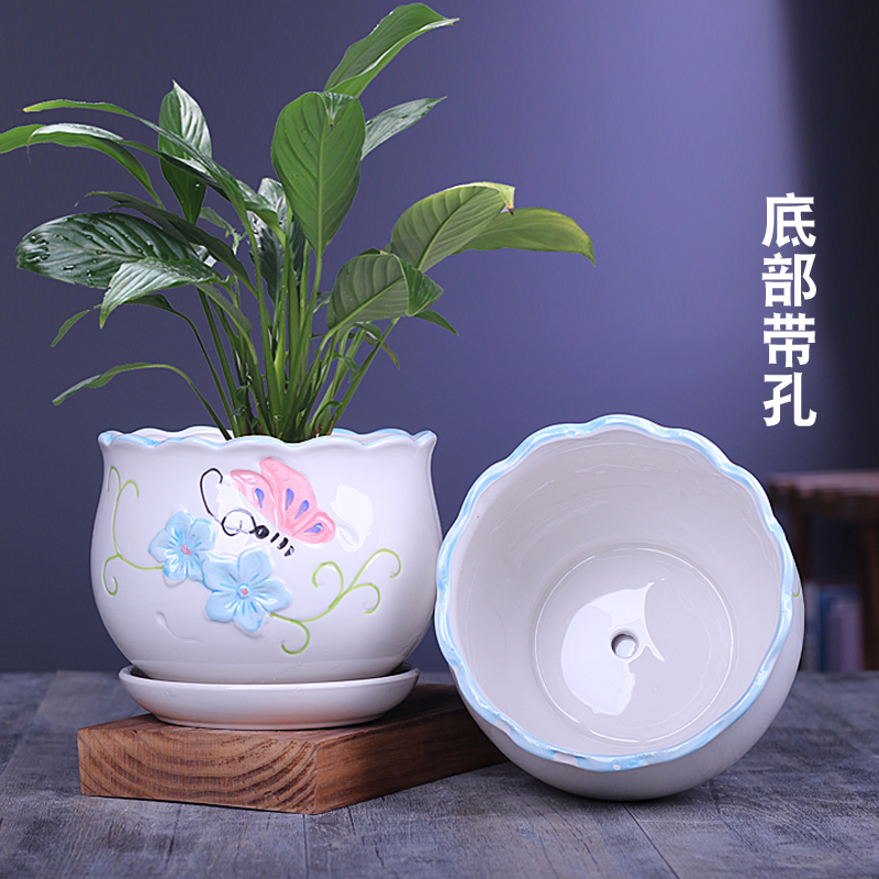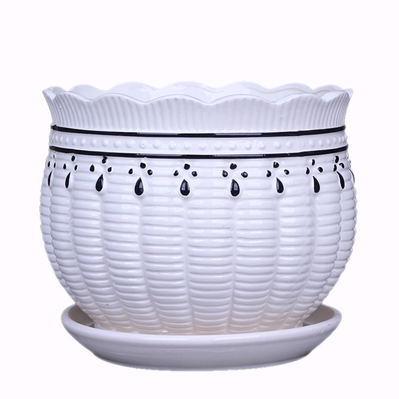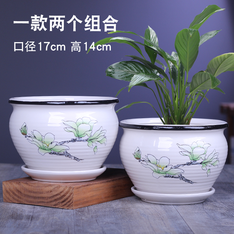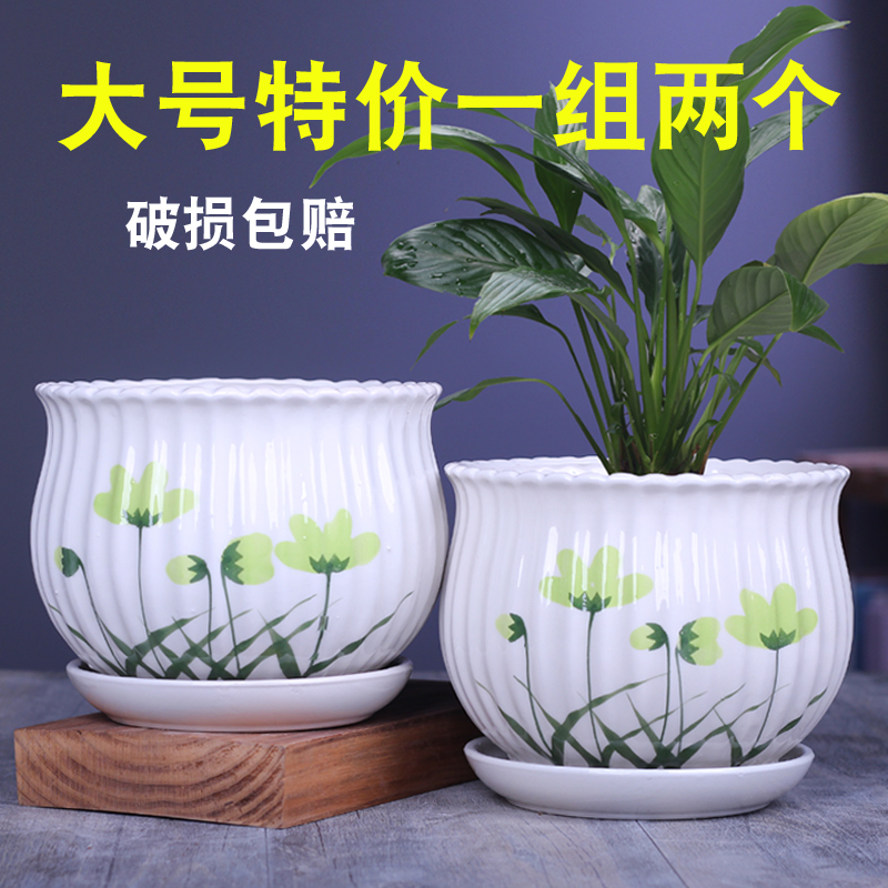Flower pot ceramic large clearance set of two with tray indoor simple gold Ge living room Chlorophytum special wholesale