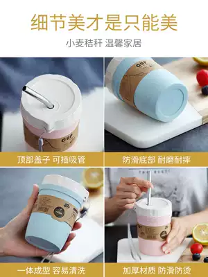 W wheat Cup Breakfast Cup special cup with lid spoon portable student large oat Cup with spoon