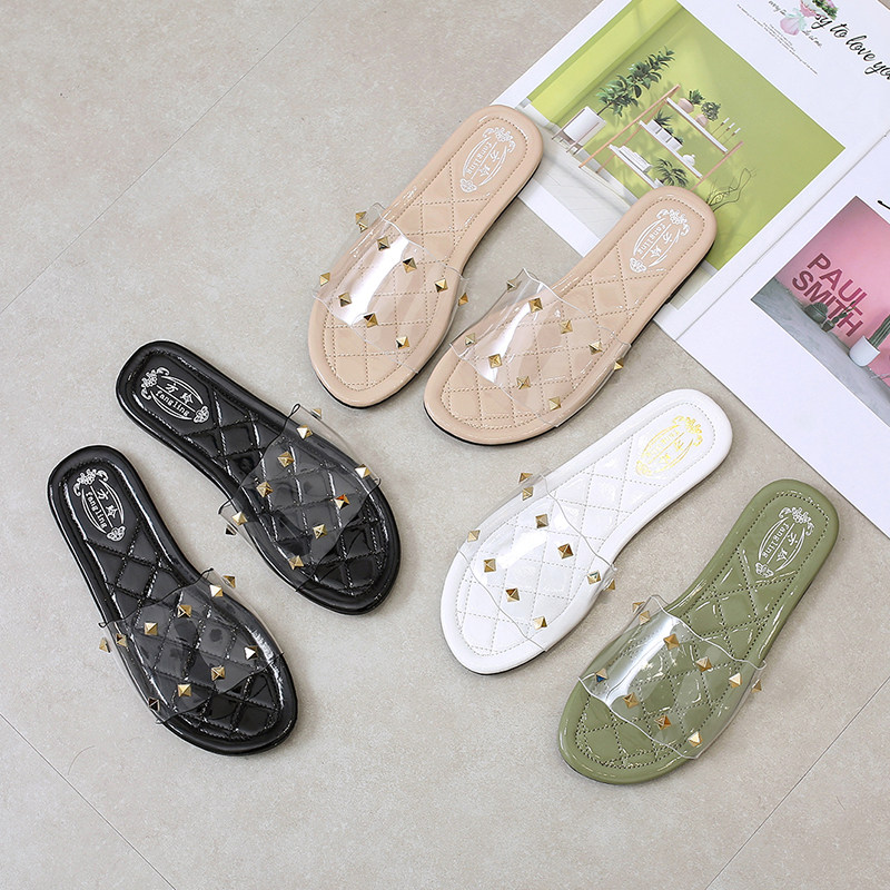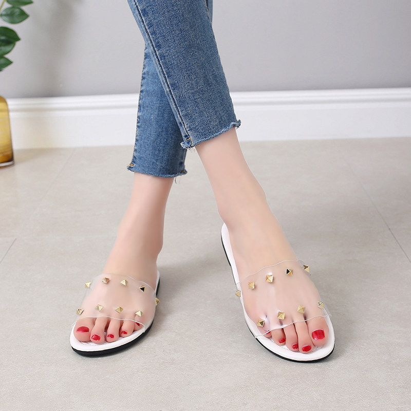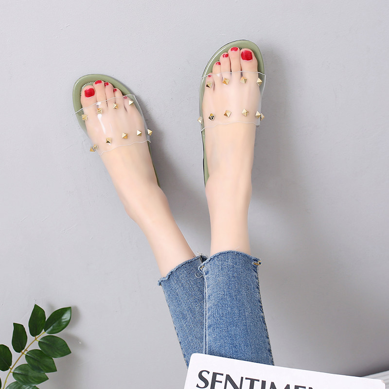 Slippers Lady Outside of Jelly Beach Sandals Sandals Shoes Summer Rivets Fashion Flat Bottom Anti-Slip Bathroom Bath