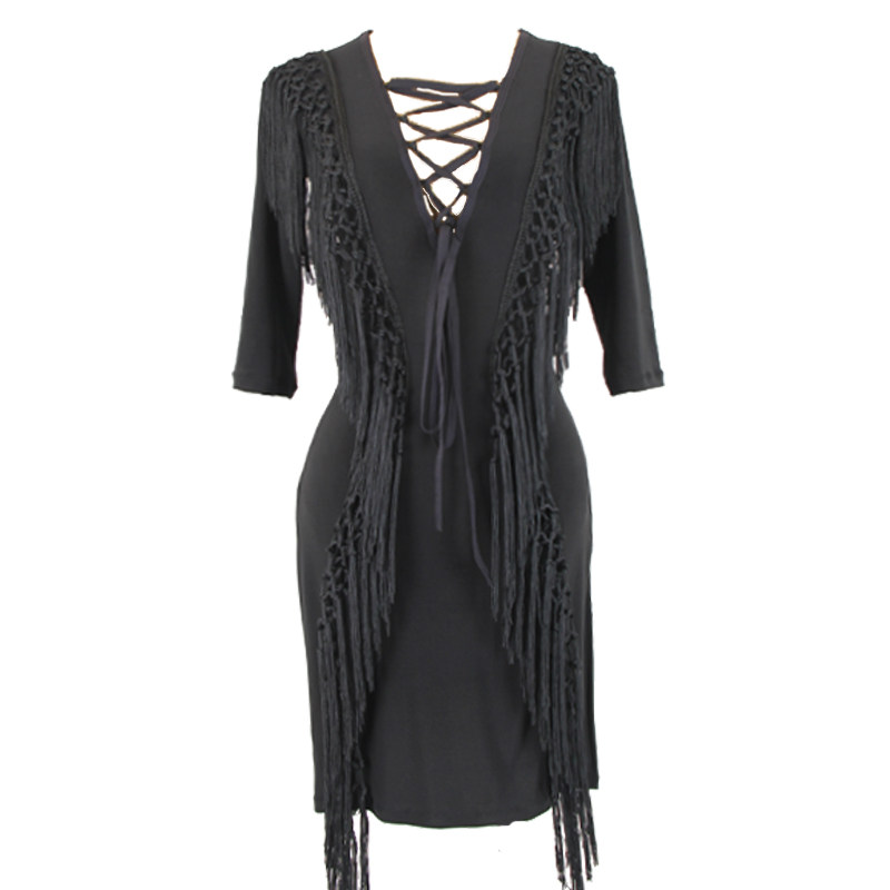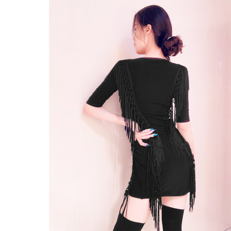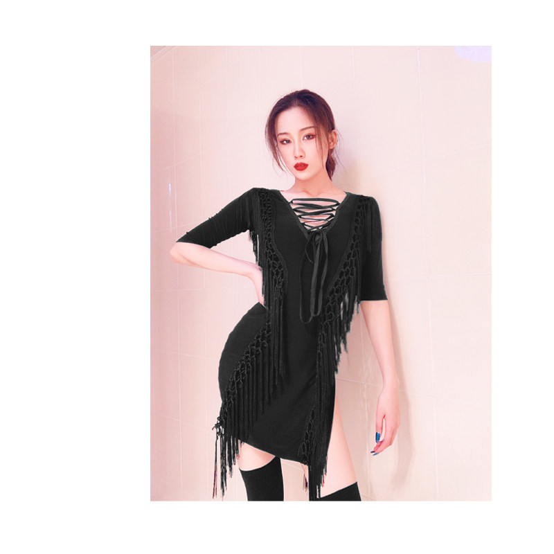 zs Latin dance practice suit vintage encryption braided tassel side split body training dress L274
