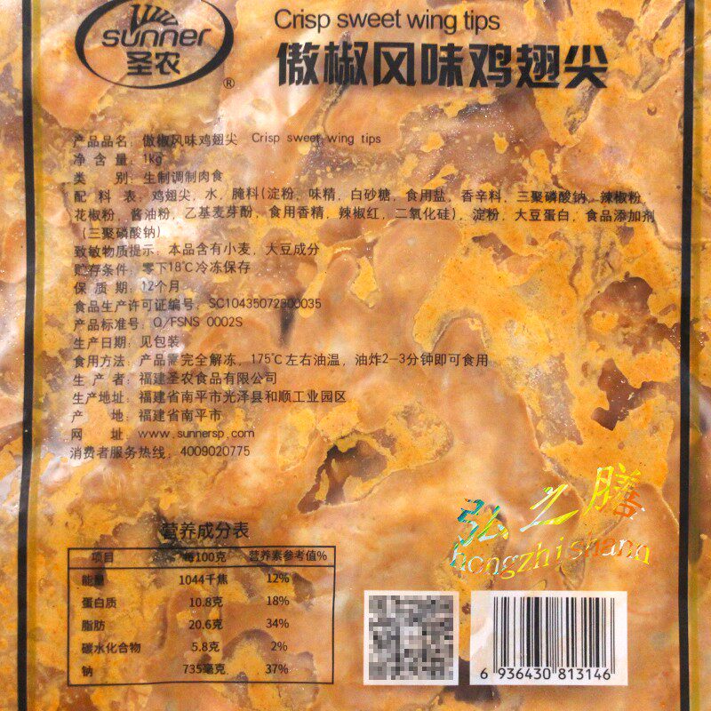 Sannon Teng Pepper Flavor Chicken Wings Tip 1000g Grilled Chicken Wings Salted Conditioning Kfc Semi-finished Snack Heating Ready-to-eat
