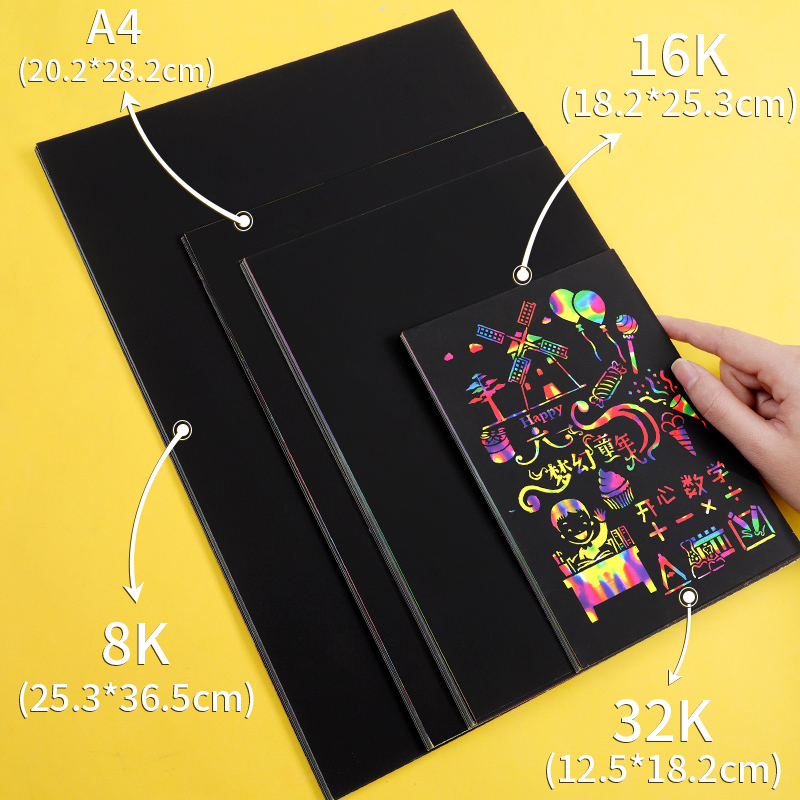 100 sheet scratch paper set 16k color graffiti paper drawing paper black scratch paper picture book scratch paper dazzling color change children's art creative painting kindergarten hanging drawing paper a4 bamboo pen handmade