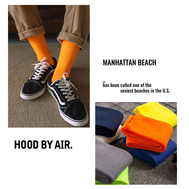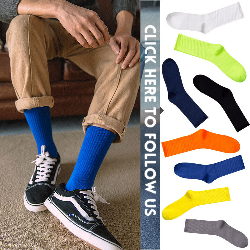 South Pole pure colour long cylinder male Korean version pure cotton lins trendy day series high cylinder deodorant middle cylinder socks Summer thin XC