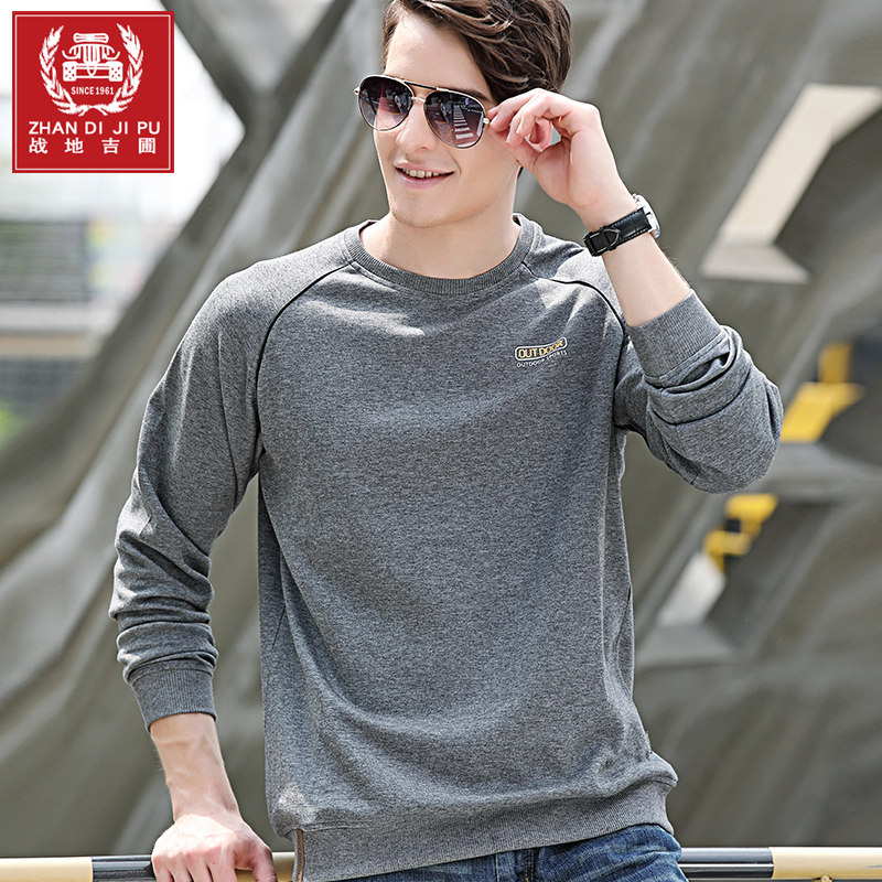 2021 spring long sleeve sweatpants thick cotton T male loose casual round neck long sleeve T-shirt male insert shoulder sleeve sweatshirt
